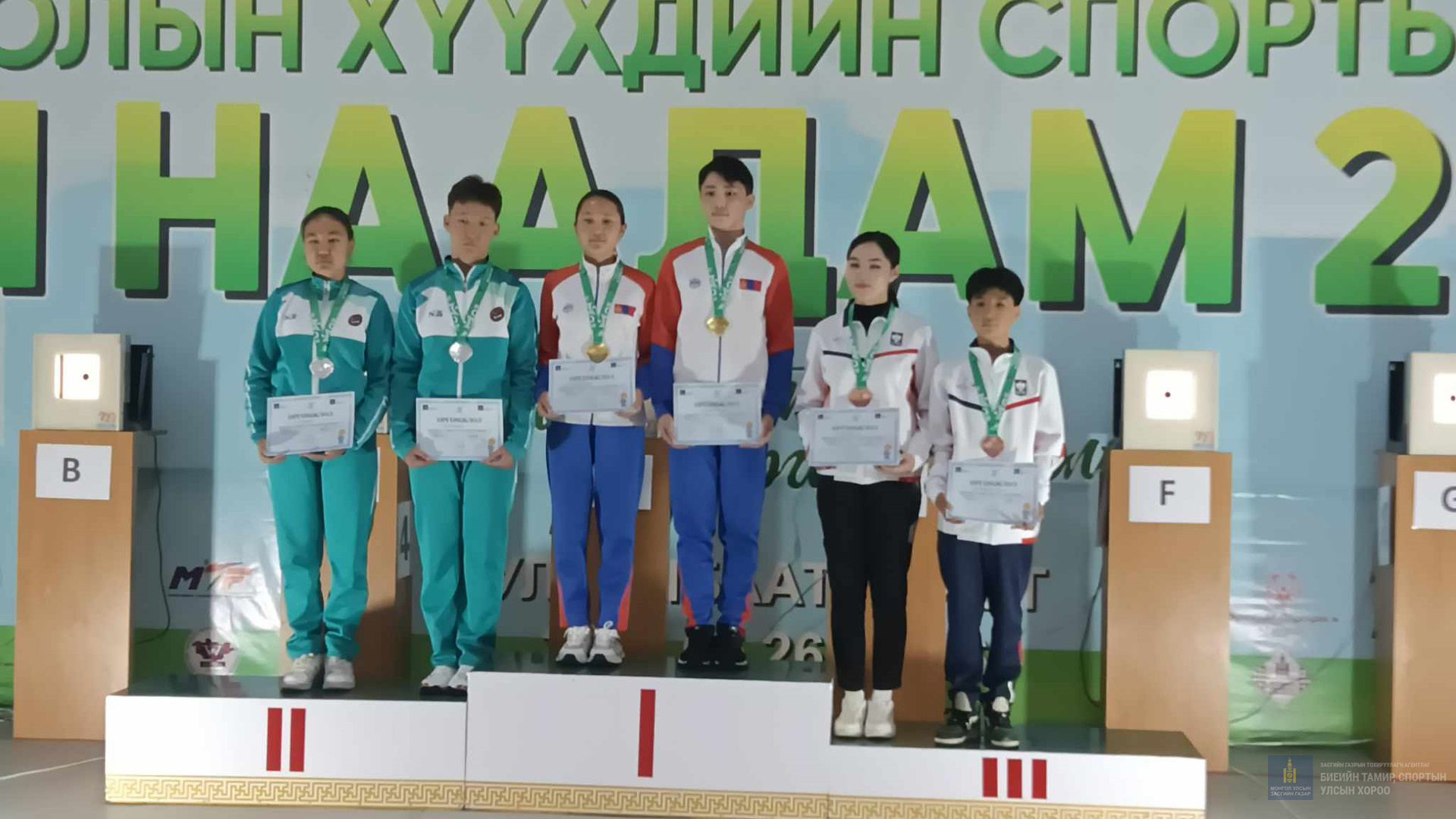 Монголын Хүүхдийн Спортын Зуны VIII Наадмын шигшээ тэмцээнд Хийн урт буу 10м зайн Холимог багийн төрөлд ОУХМ Т. Баяржаргал дасгалжуулагчтай Аймгийн Засаг даргын дэргэдэх өсвөр үеийн Буудлагын шигшээ багийн тамирчин Хэрлэн-1 ЕБС-ийн 7А ангийн сурагч Даваанямын Нандин-Эрдэнэ, Бор-Өндөр сумын ЕБС-ийн 12Б ангийн сурагч Бат-Оюуны Удвалцэцэг нар